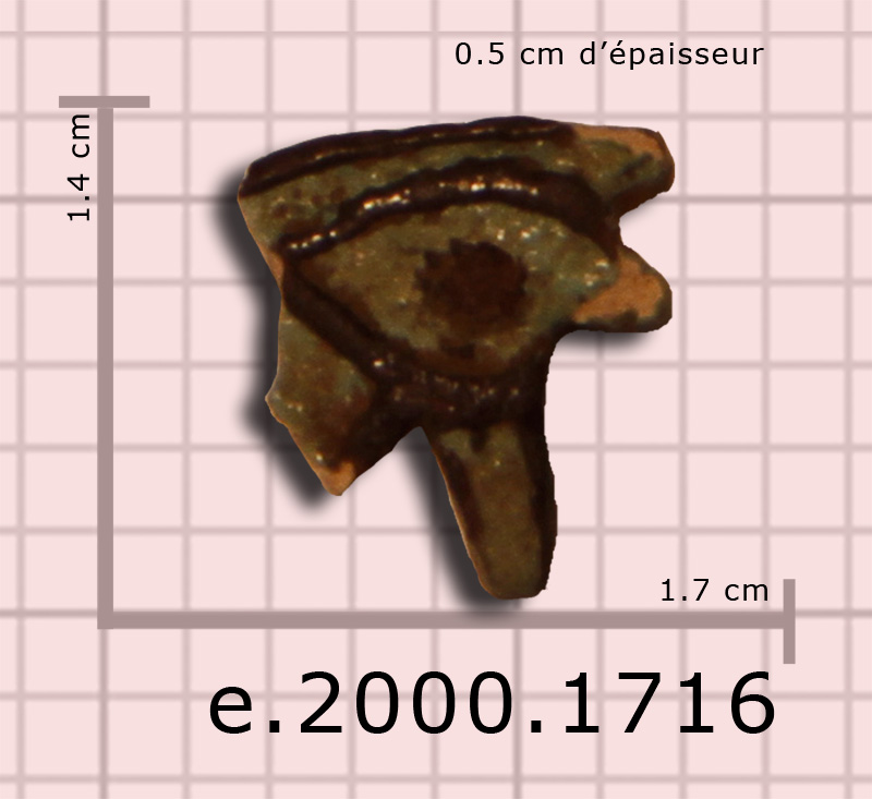 L'oeil droit est moulé sur un seul côté avec des formes en saillie laissant voir un peu de glaçure.